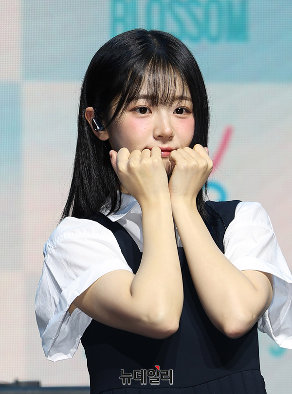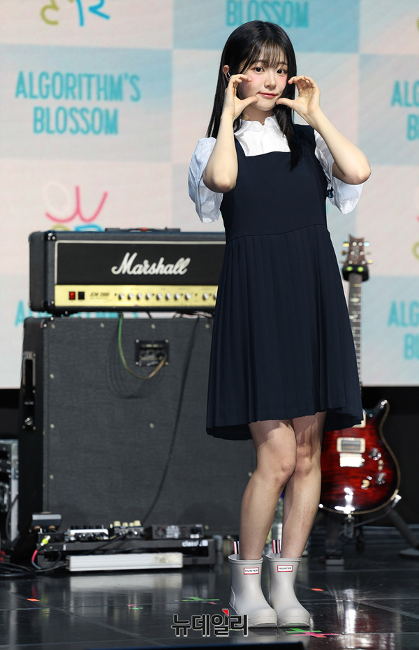 밴드 QWER 쵸단이 23일 오후 서울 서대문구 예스24 원더로크홀에서 열린 2번째 미니앨범 쇼케이스에서 포즈를 취하고 있다.