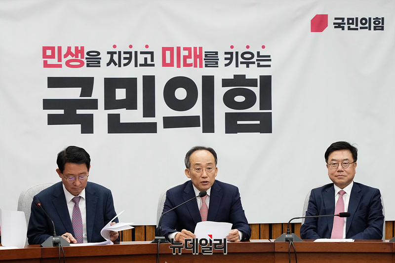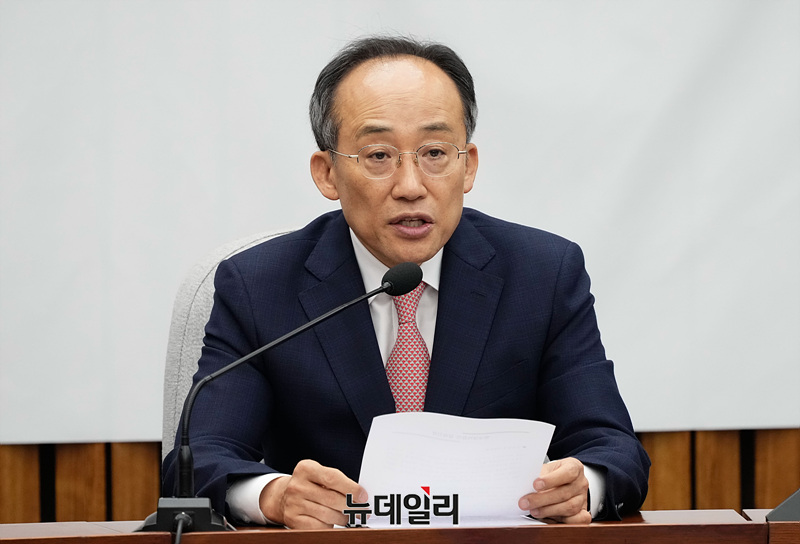추경호 국민의힘 원내대표가 24일 오전 서울 여의도 국회에서 열린 원내대책회의에서 모두발언을 하고 있다.