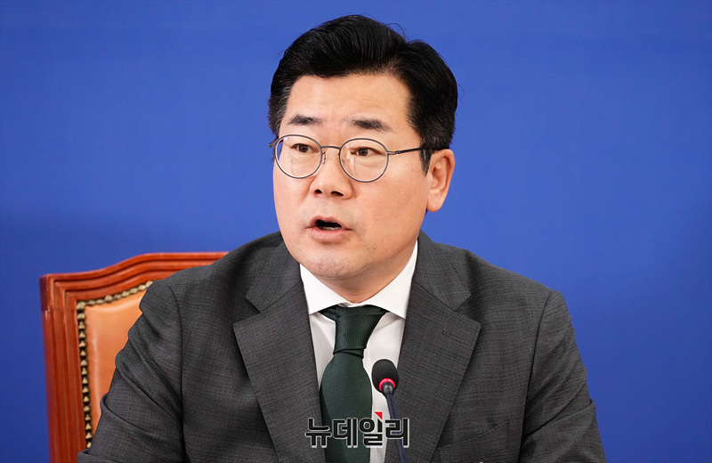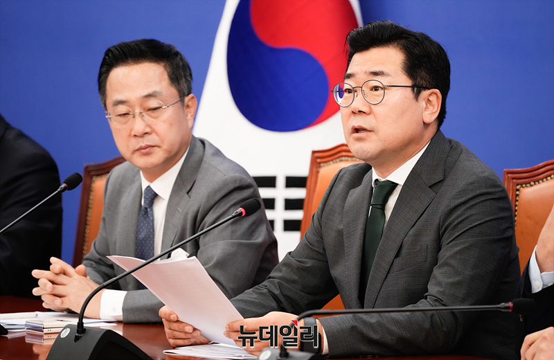 박찬대 더불어민주당 원내대표가 24일 오전 서울 여의도 국회에서 열린 원내대책회의에서 모두발언을 하고 있다.