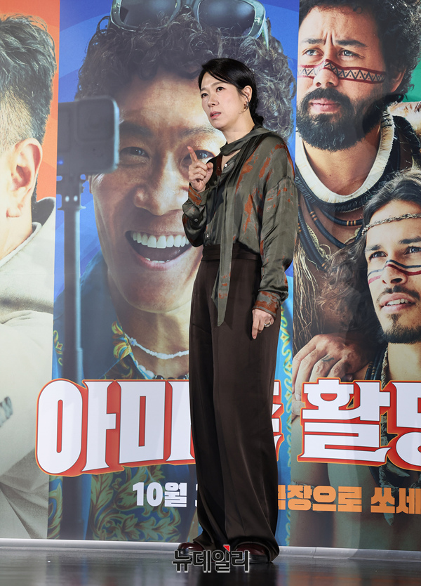 배우 염혜란이 24일 오전 서울 광진구 롯데시네마 건대입구점에서 열린 영화 '아마존 활명수(감독 김창주)' 제작보고회에서 포즈를 취하고 있다.