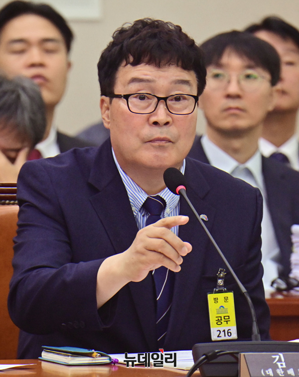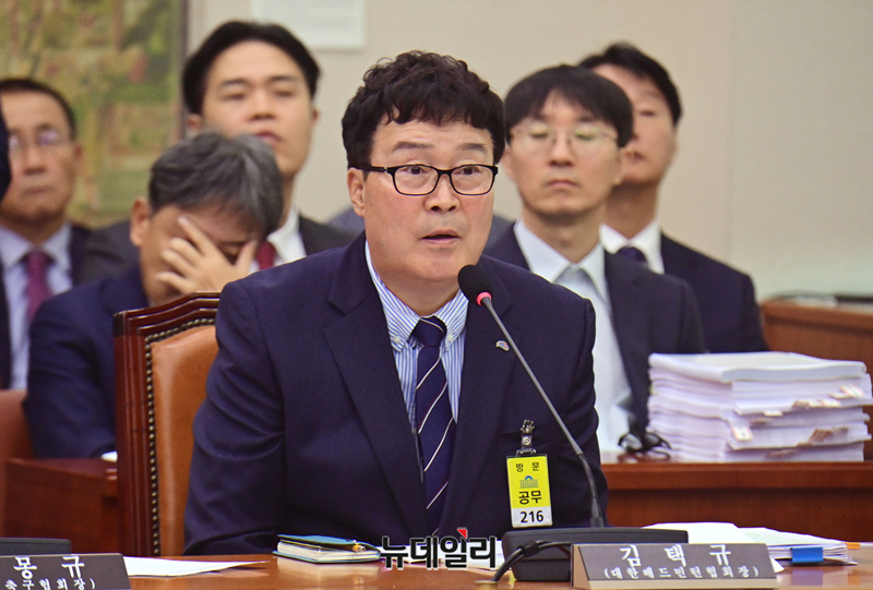 김택규 대한배드민턴협회 회장이 24일 국회에서 열린 문화체육관광위원회 현안질의에 축석해 의원들의 질문에 답하고 있다.
