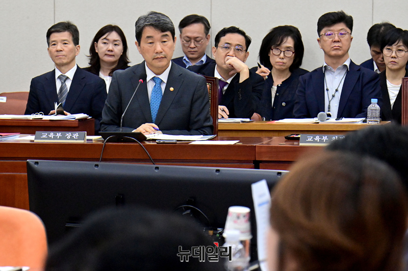 이주호 사회부총리 겸 교육부 장관이 24일 국회에서 열린 교육위원회 전체회의에서 의원들의 질의에 답변하고 있다.