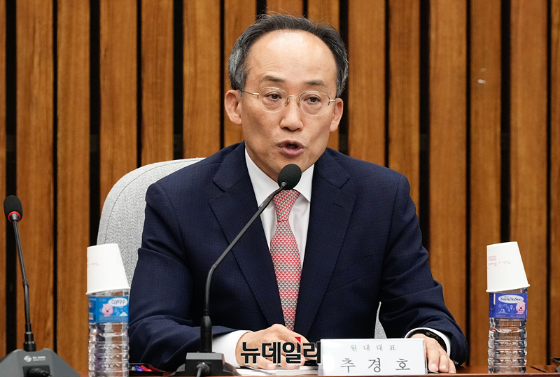 추경호 국민의힘 원내대표가 24일 오후 서울 여의도 국회에서 열린 부산·울산·경남 지역민생 예산정책 협의회에서 인사말을 하고 있다.