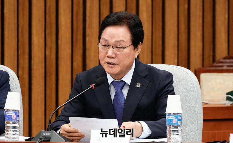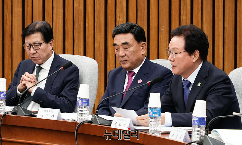 박완수 경남도지사가 24일 오후 서울 여의도 국회에서 열린 부산·울산·경남 지역민생 예산정책 협의회에서 인사말을 하고 있다.