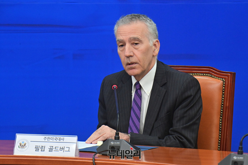 [포토] 환담 나누는 이재명 대표와 필립 골드버그 주한미국대사
