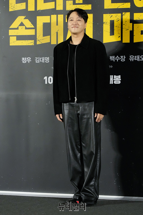 배우 김대명이 26일 오전 서울 용산구 CGV 아이파크몰에서 열린 영화 '더러운 돈에 손대지 마라(감독 김민수)' 제작보고회에서 포즈를 취하고 있다.