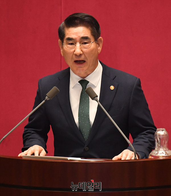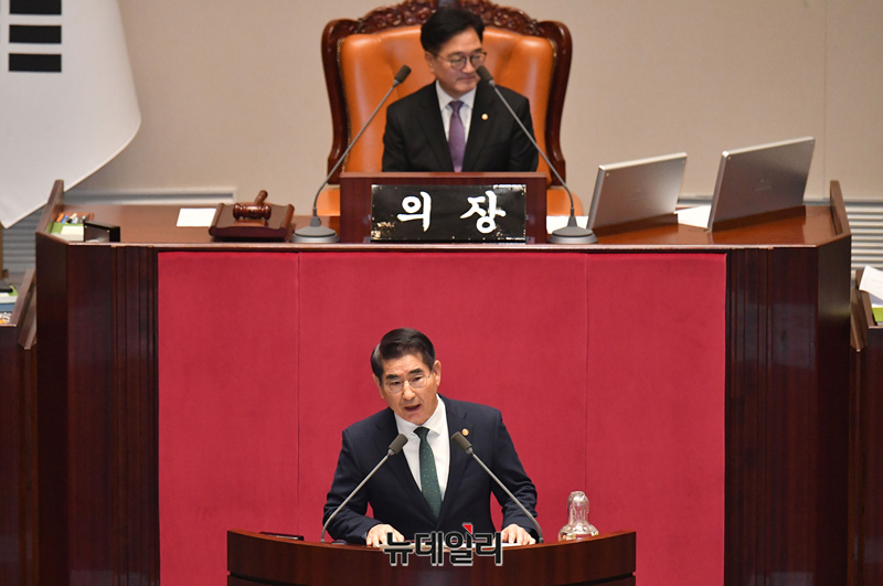 김용현 국방부 장관이 26일 오후 국회에서 열린 본회의에서 신임 국무위원 인사를 하고 있다.