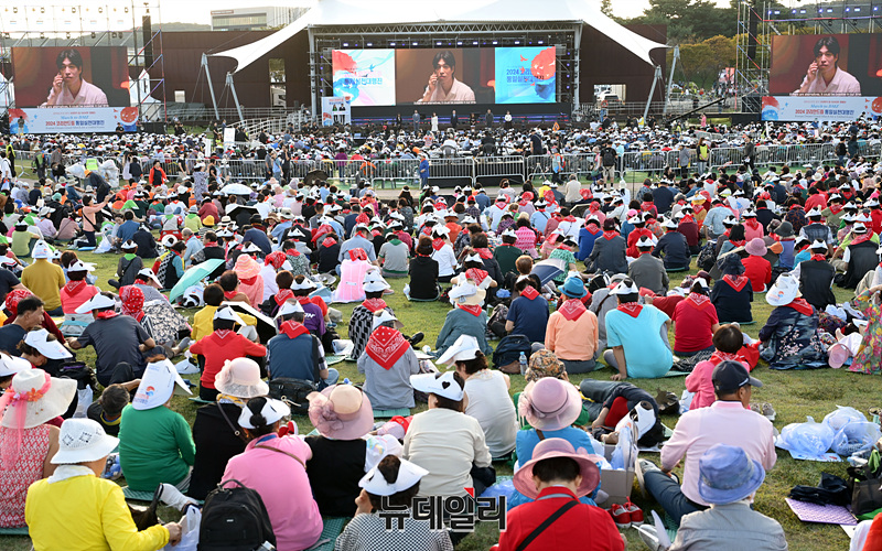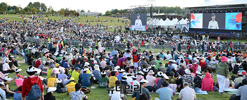 참석자들이 28일 경기도 파주시 임진각 평화누리공원에서 열린 '2024 코리안드림 통일실천대행진'에 참석해 자리하고 있다. (사진=공동취재단)