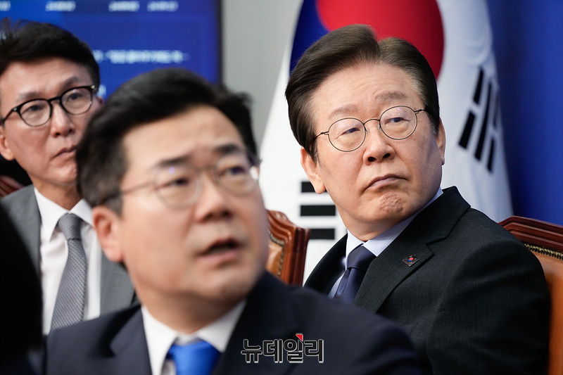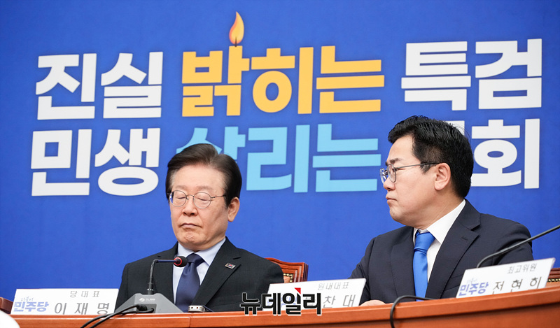 이재명 더불어민주당 대표가 30일 오전 서울 여의도 국회에서 열린 최고위원회의에 참석해 자리하고 있다.
