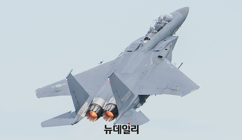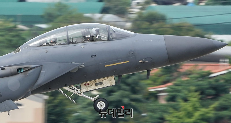 [포토] 불 뿜으며 출격하는 'F-15K' 전투기