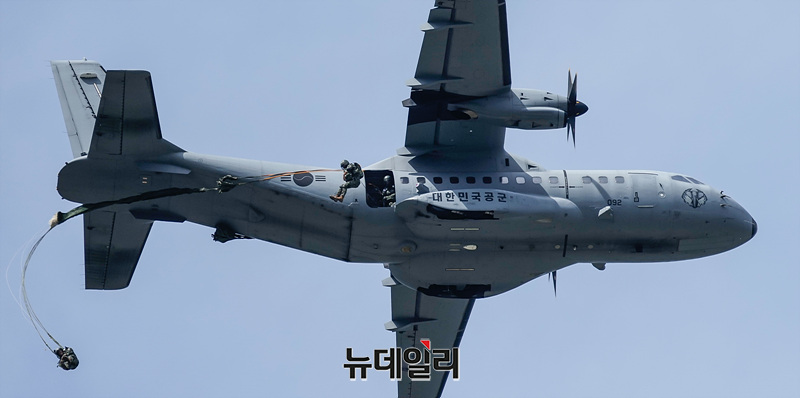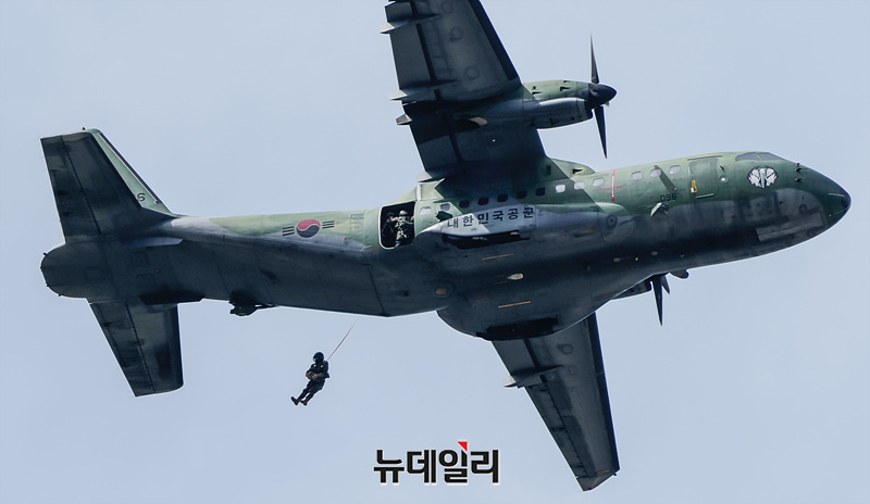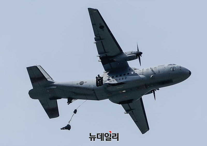 [포토] CN235 수송기서 뛰어내리는 특전사 대원