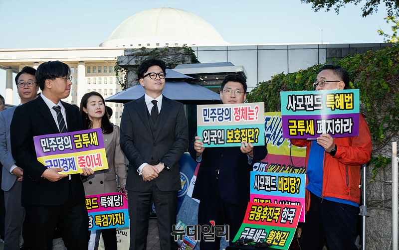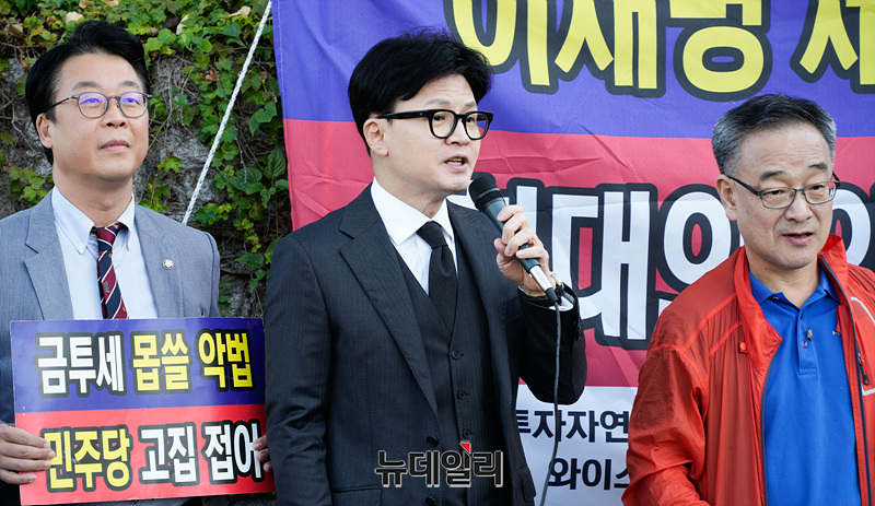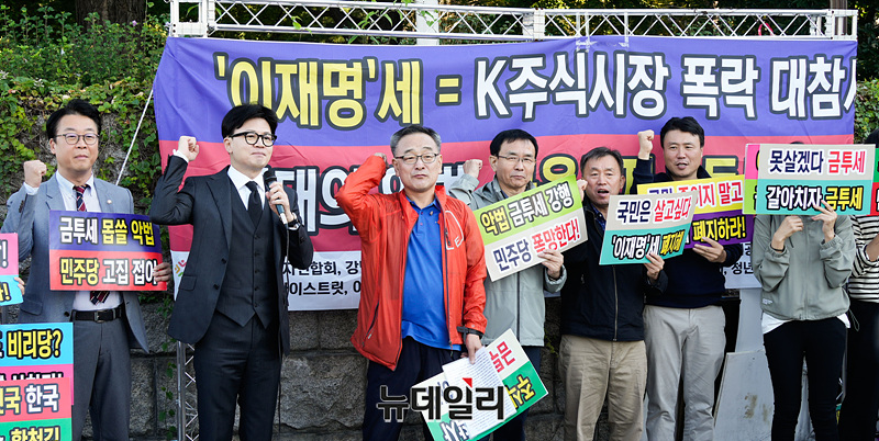 [포토] '금투세 폐지' 촉구 집회 참석한 한동훈 대표