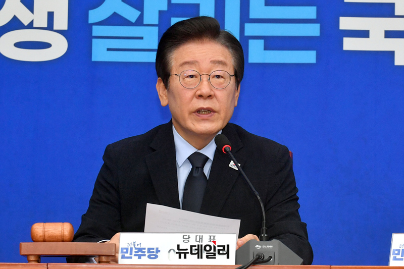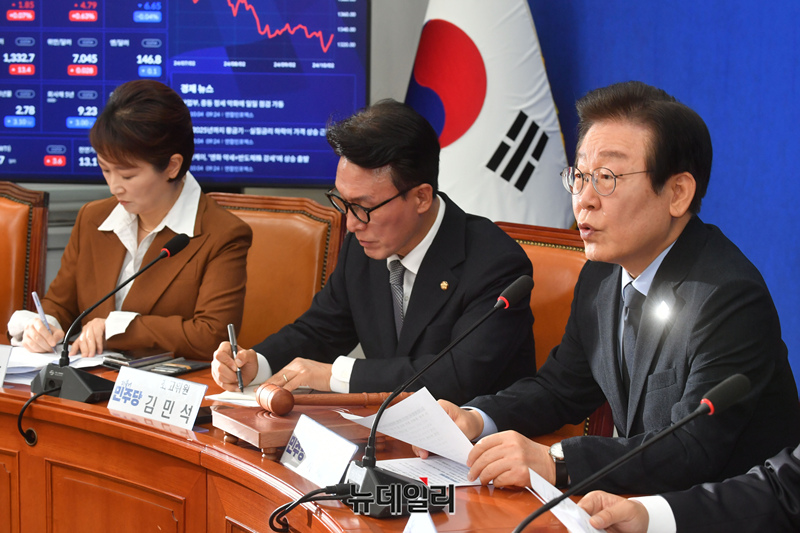 이재명 더불어민주당 대표가 4일 오전 국회에서 열린 최고위원회의에서 모두발언을 하고 있다.