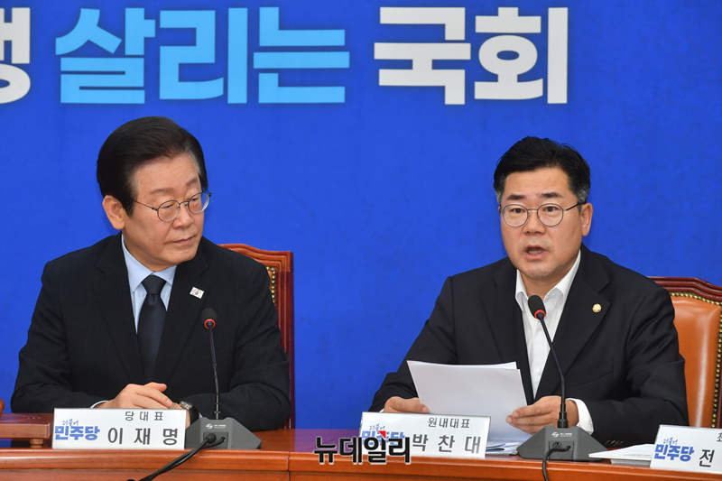 박찬대 더불어민주당 원내대표가 4일 오전 국회에서 열린 최고위원회의에 참석해 모두발언을 하고 있다.