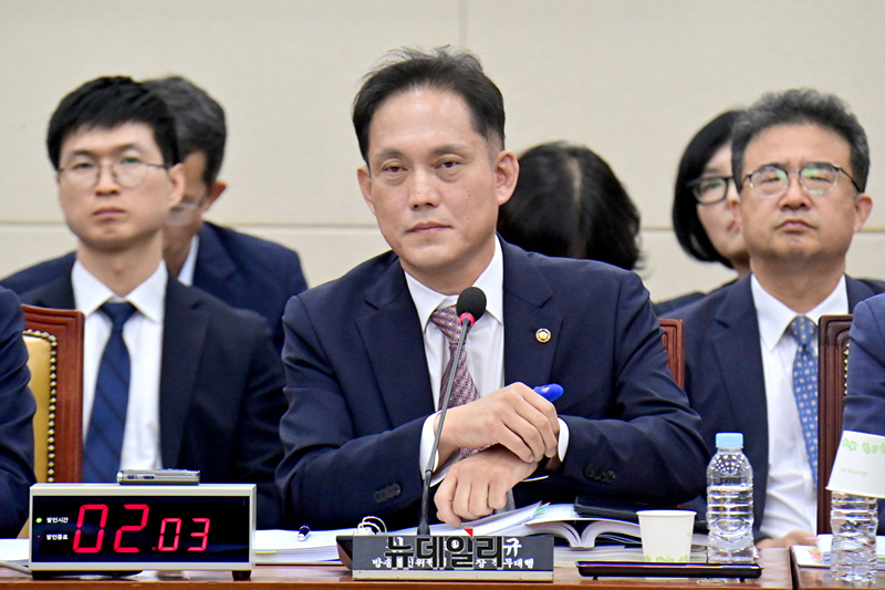 김태규 방송통신위원회 위원장 직무대행이 7일 오전 국회 과학기술정보방송통신위원회에서 열린 방송통신위원회·방송통신사무소·시청자미디어재단·한국방송광고진흥공사 국정감사에서 의원들의 질의에 답하고 있다.