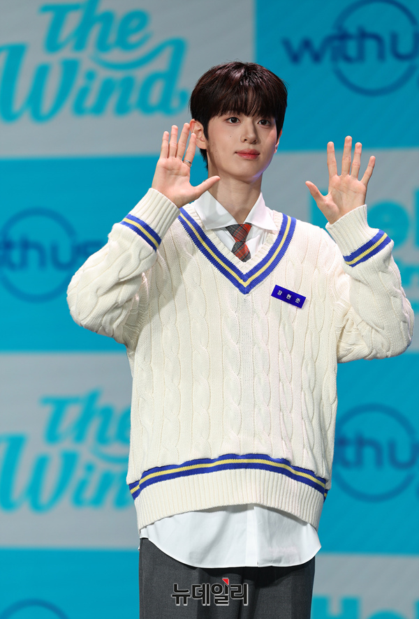 아이돌그룹 더윈드(The Wind) 장현준이 7일 오후 서울 강남구 일지아트홀에서 열린 세번째 미니앨범 '헬로우:마이 퍼스트 러브' 쇼케이스에서 포즈를 취하고 있다.