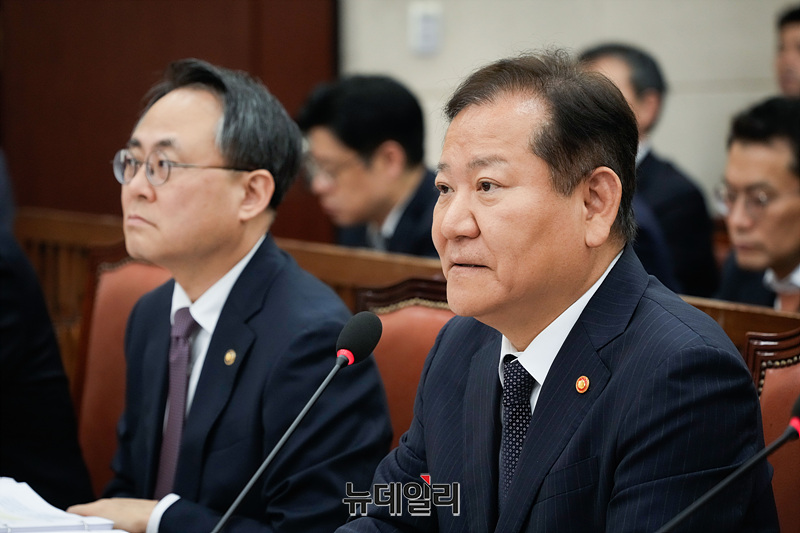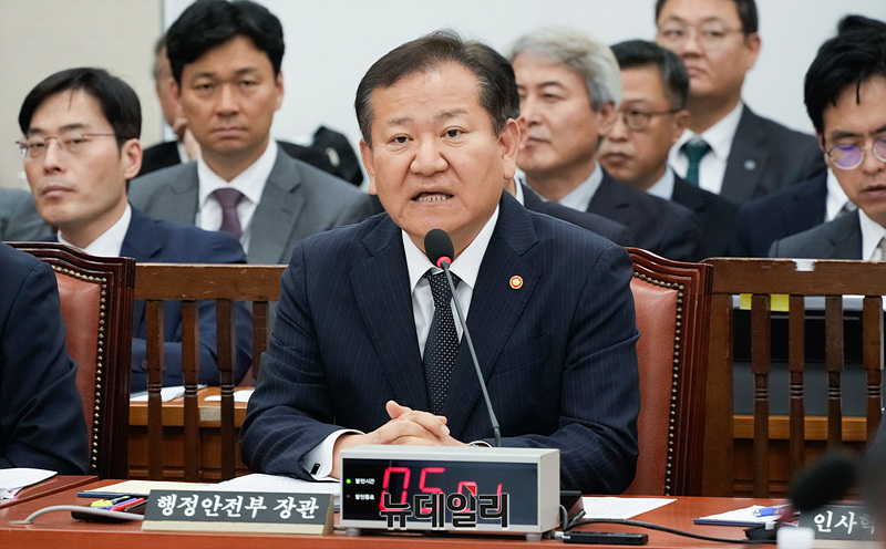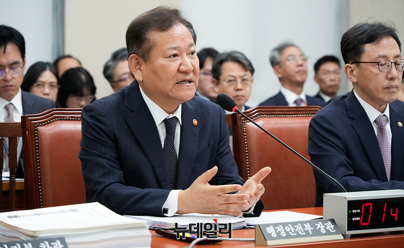 이상민 행정안전부 장관이 7일 오후 서울 여의도 국회에서 열린 국회 행정안전위원회의 행정안전부, 인사혁신처 등에 대한 국정감사에서 의원들의 질의에 답하고 있다.