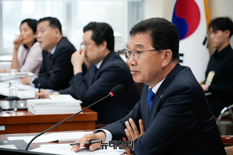 신정훈 위원장이 7일 오후 서울 여의도 국회에서 열린 국회 행정안전위원회의 행정안전부, 인사혁신처 등에 대한 국정감사에서 의사봉을 두드리고 있다.