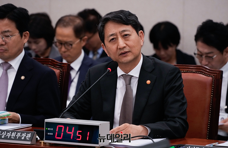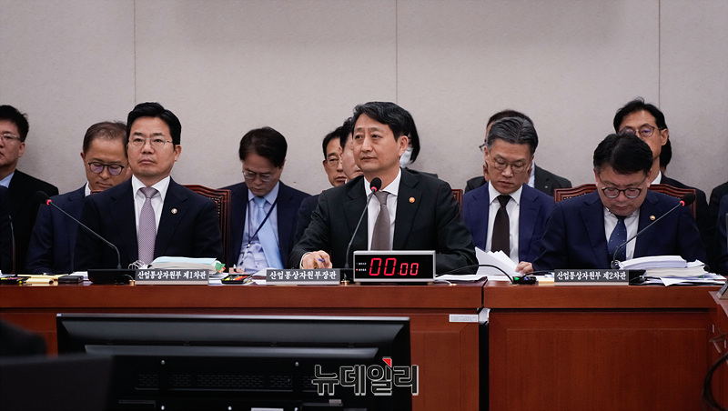 안덕근 산업부 장관이 7일 오후 서울 여의도 국회에서 열린 국회 산업통상자원중소벤처기업위원회의 산업통상자원부에 대한 국정감사에서 의원들의 질문에 답하고 있다.
