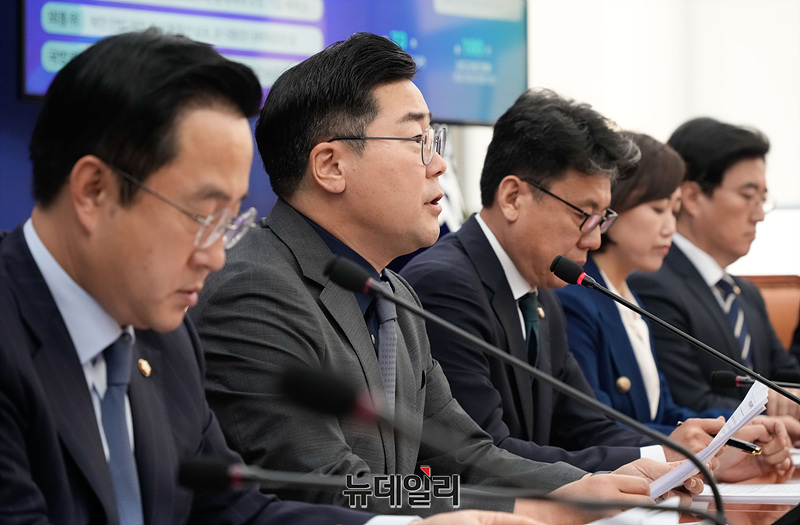 박찬대 더불어민주당 원내대표가 8일 오전 서울 여의도 국회에서 열린 국정감사대책회의에서 모두발언을 하고 있다.