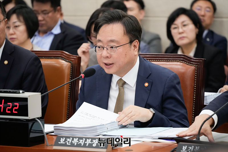 조규홍 보건복지부 장관이 8일 오전 서울 여의도 국회 보건복지위원회에서 열린 보건복지부 등에 대한 국정감사에서 의원들의 질의에 답변하고 있다.