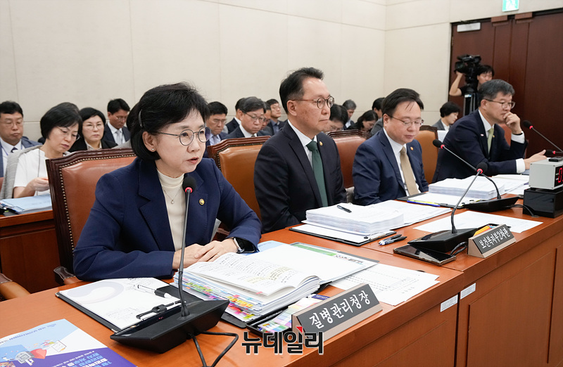 지영미 질병관리청장이 8일 오전 서울 여의도 국회 보건복지위원회에서 열린 보건복지부 등에 대한 국정감사에서 의원들의 질의에 답변하고 있다.