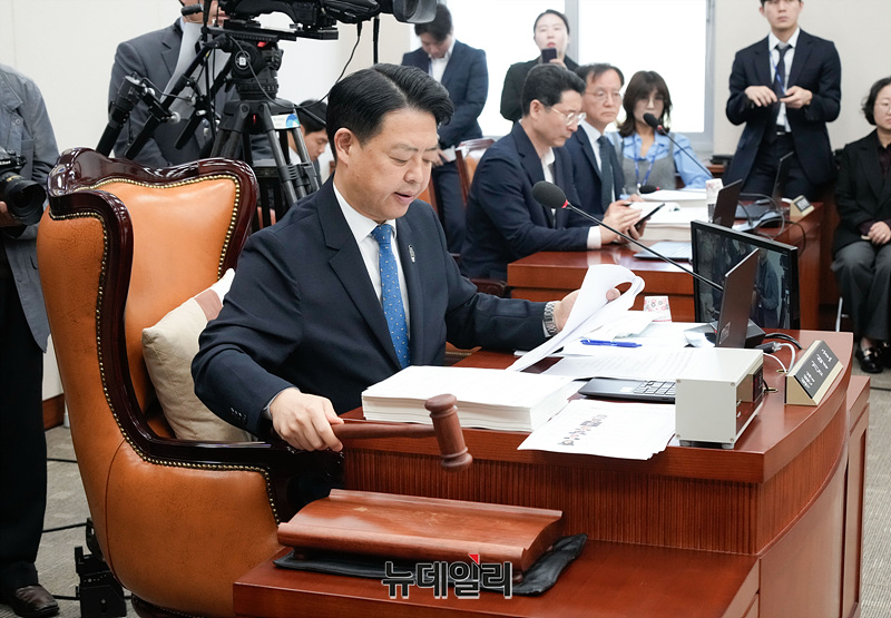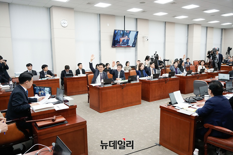 김영호 위원장이 8일 오전 서울 여의도 국회에서 열린 국회 교육위원회의 교육부, 국가교육위원회 등에 대한 국정감사에서 설민신 교수 동행명령장을 의결하고 있다.