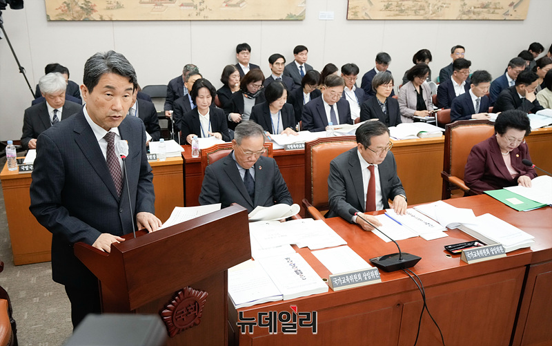 이배용 국가교육위원회 위원장이 8일 오전 서울 여의도 국회에서 열린 국회 교육위원회의 교육부, 국가교육위원회 등에 대한 국정감사에서 업무보고를 하고 있다.