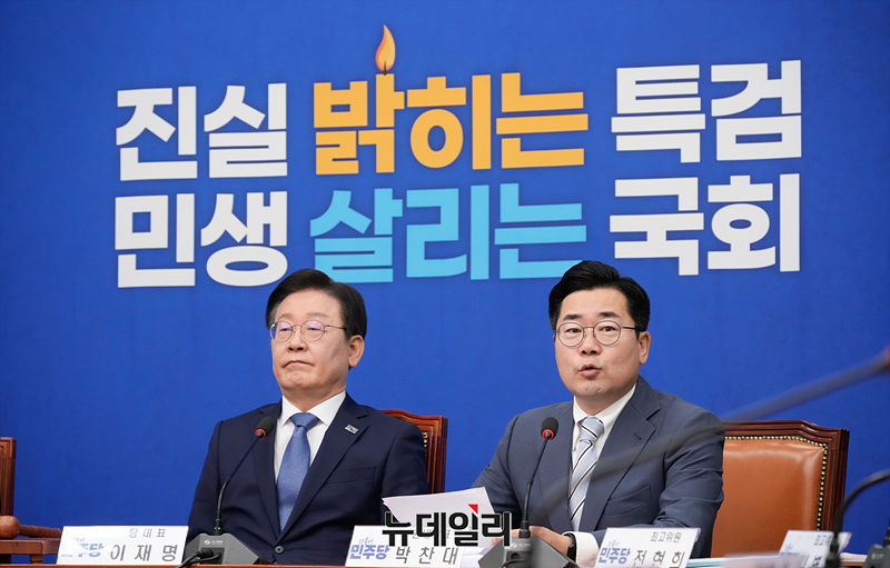 박찬대 더불어민주당 원내대표가 11일 오전 서울 여의도 국회에서 열린 최고위원회의에서 모두발언을 하고 있다.
