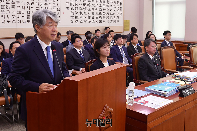 이종석 헌법재판소장이 11일 오전 국회 법제사법위원회의 헌법재판소 등에 대한 국정감사에서 인사말을 하고 있다.