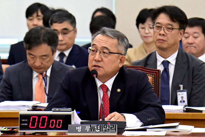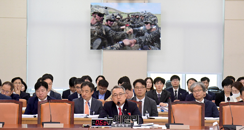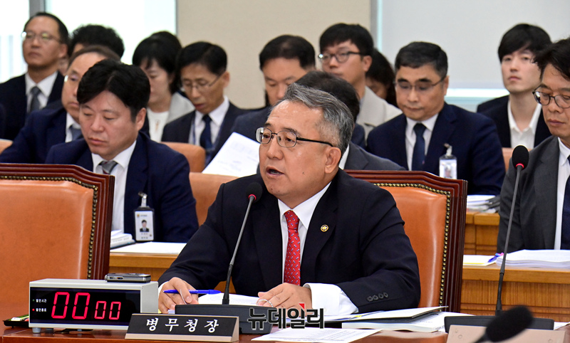 김종철 병무청장이 11일 오전 국회에서 열린 국회 국방위원회의 국정감사에서 위원 질의에 답하고 있다.