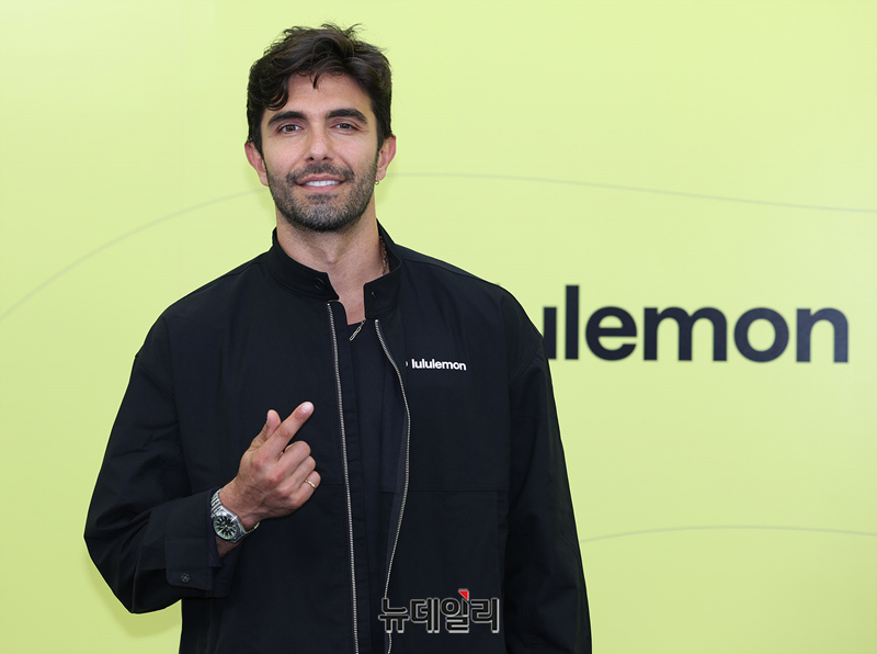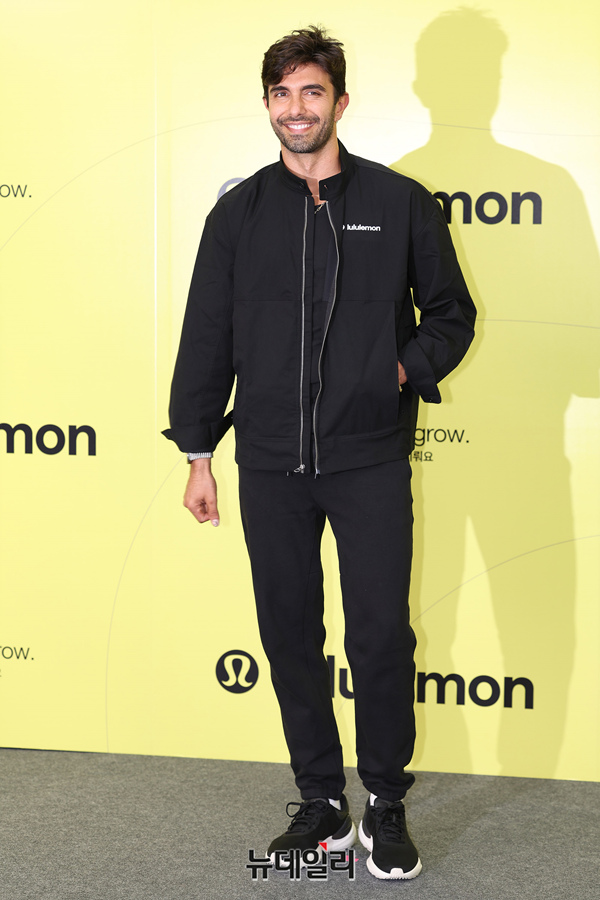룰루레몬 엠버서더 '아킨 아크만'이 11일 오후 서울 강남구 코엑스 K-POP광장에서 열린 룰루레몬 캠페인 런칭행사에 참석해 포즈를 취하고 있다.