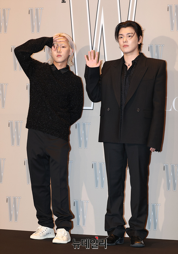 음악프로듀서 그루비룸 이휘민과 박규정이 14일 오후 서울 종로구 포시즌스 호텔 서울에서 열린 더블유 코리아 제19회 유방암 인식 향상 캠페인 자선 행사에서 기념촬영을 하고 있다.
