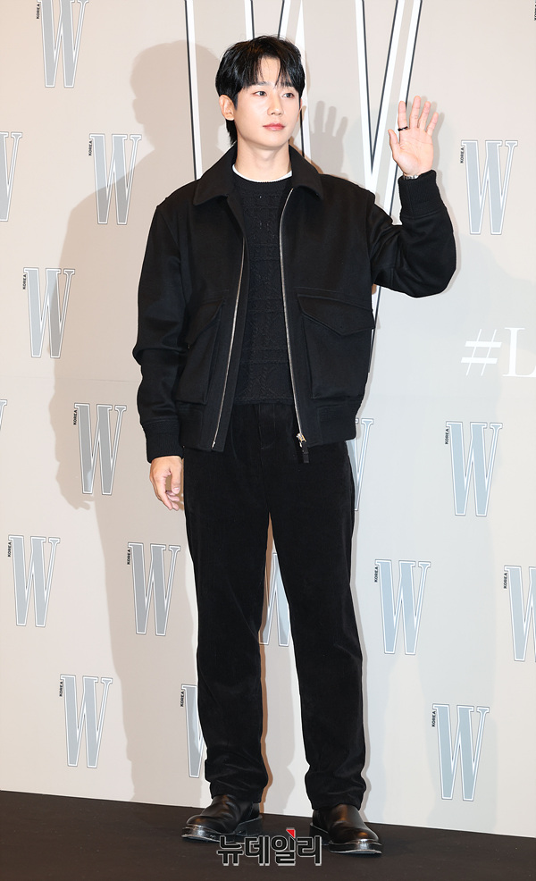 배우 정해인이 14일 오후 서울 종로구 포시즌스 호텔 서울에서 열린 더블유 코리아 제19회 유방암 인식 향상 캠페인 자선 행사에서 기념촬영을 하고 있다.