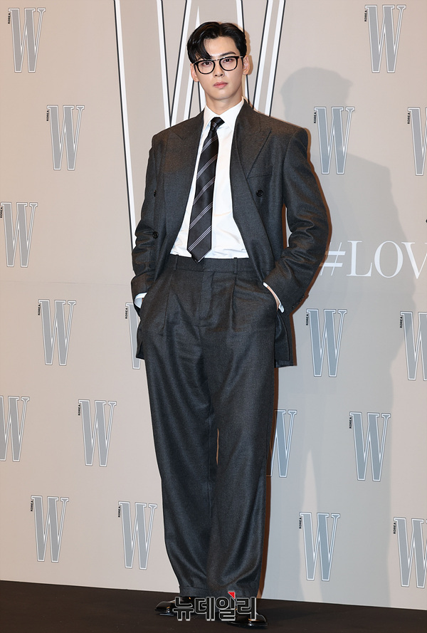 가수 겸 배우 차은우가 14일 오후 서울 종로구 포시즌스 호텔 서울에서 열린 더블유 코리아 제19회 유방암 인식 향상 캠페인 자선 행사에서 기념촬영을 하고 있다.