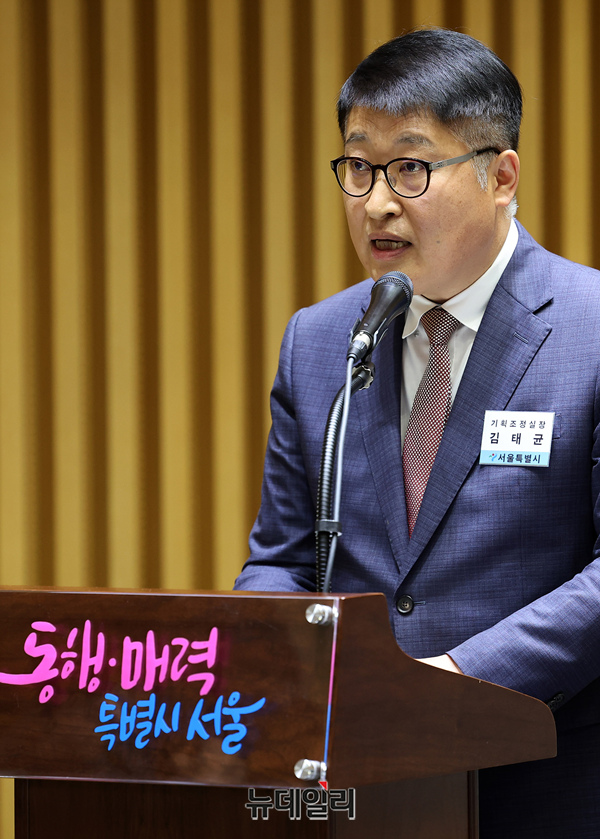 김태균 서울시 기획조정실장이 15일 오전 서울시청에서 열린 국회 행정안전위원회의 서울특별시에 대한 국정감사에서 업무보고를 하고 있다.