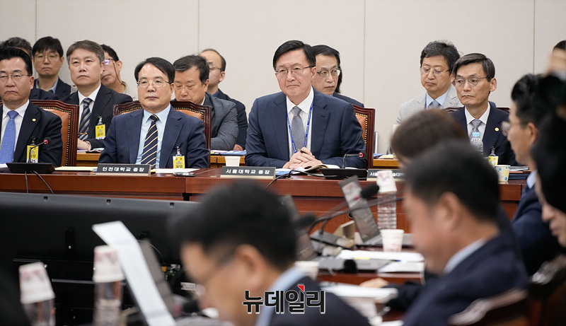 유홍림 서울대학교 총장이 15일 오전 서울 여의도 국회에서 열린 국회 교육위원회의 서울대학교, 서울대병원 등에 대한 국정감사에서 의원들의 질의에 답하고 있다.