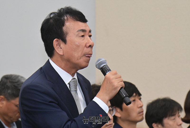 김진구 유진 ENT 대표이사가 15일 오전 국회 과학기술정보방송통신위원회에서 열린 방송통신위원회 국정감사에 증인 출석해 의원들의 질문에 답하고 있다.