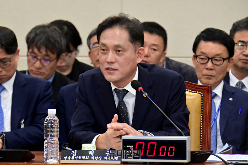 김태규 방송통신위원회 부위원장이 15일 오전 국회 과학기술정보방송통신위원회에서 열린 방송통신위원회 국정감사에 출석해 의원들의 질문에 답하고 있다.