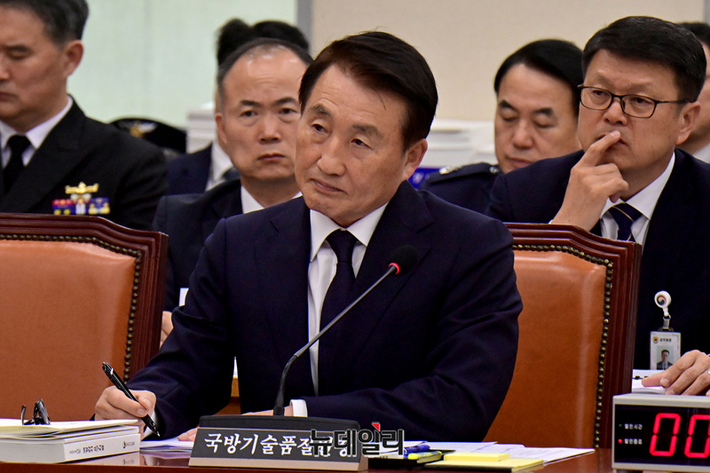 신상범 국방기술품질원장이 15일 오전 국회에서 열린 국방위원회의 방위사업청 등에 대한 국정감사에서 의원들의 질문에 답하고 있다.
