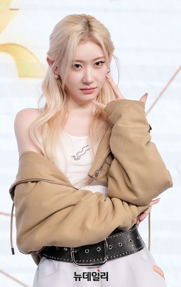 걸그룹 있지(ITZY) 채령이 15일 오후 서울 여의도 콘래드 호텔에서 열린 미니 앨범 '골드(GOLD)' 발매 기념 기자간담회에서 포즈를 취하고 있다.