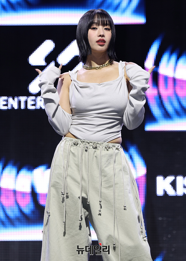 걸그룹 키스오브라이프 나띠가 15일 오후 서울 광진구 예스24라이브홀에서 열린 세번째 미니앨범 쇼케이스에서 포즈를 취하고 있다.