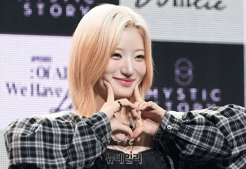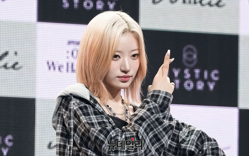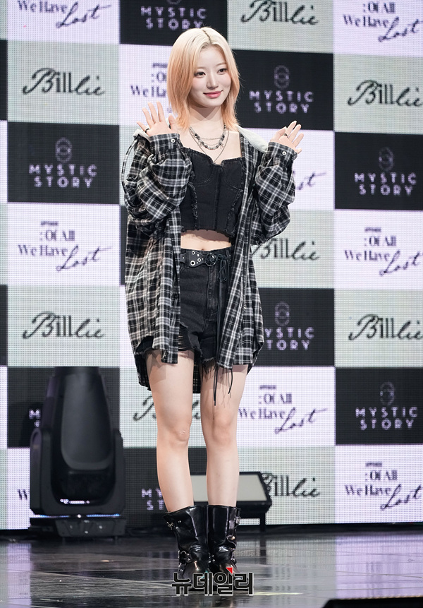 걸그룹 빌리(Billlie) 시윤이 16일 오후 서울 용산구 블루스퀘어에서 열린 미니 5집 '어펜딕스: 오브 올 위 해브 로스트(appendix: Of All We Have Lost)' 발매 기념 미디어 쇼케이스에서 포즈를 취하고 있다.