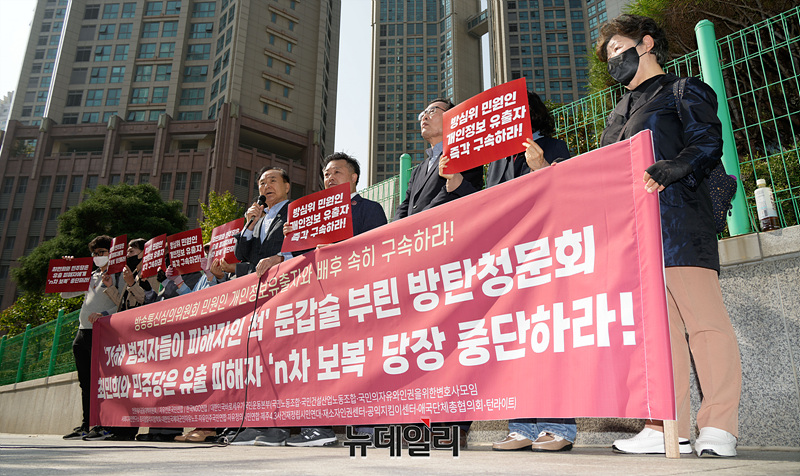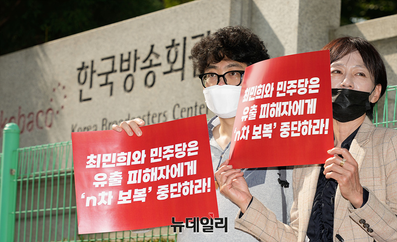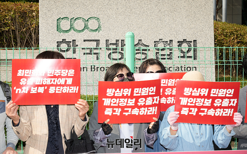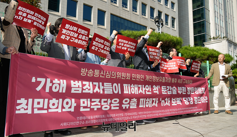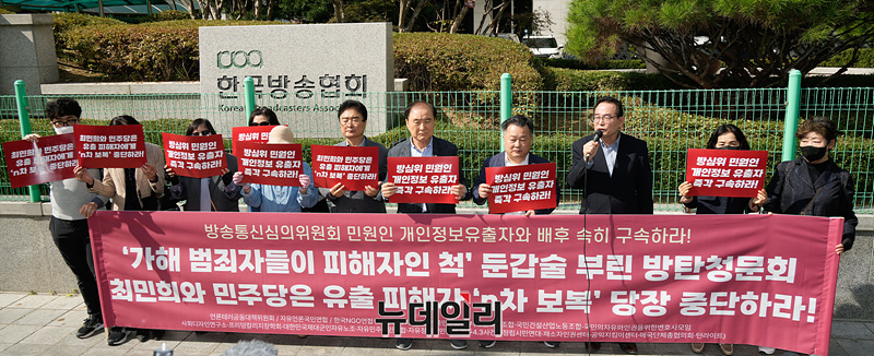 이들은 방송통신심의위(방심위) 민원인 개인정보를 유출한 혐의로 수사를 받고 있는 방심위 노조원들과 이들을 비호하는 취지의 방심위 청문회를 독단으로 개최하고 방탄에 나선 민주당 최민희 과방위원장과 야당의원을 규탄했다.