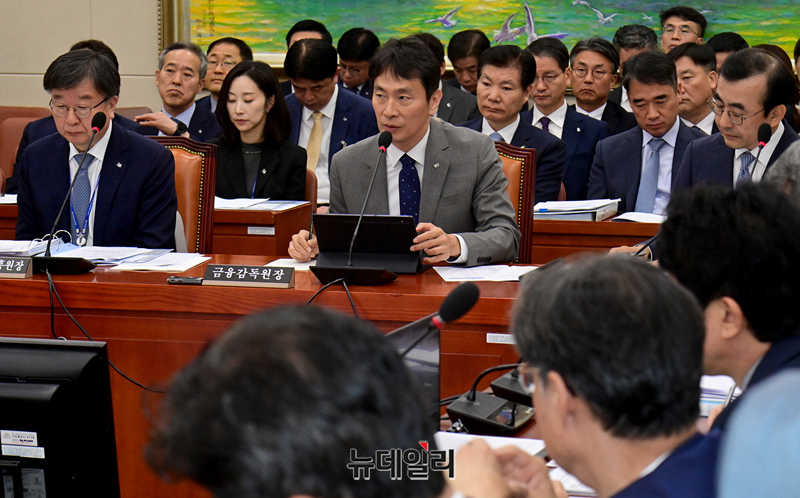 이복현 금융감독원장이 17일 오전 국회에서 열린 정무위원회의 금융감독원, 서민금융진흥원에 대한 국정감사에 출석해 의원들의 질문에 답하고 있다.