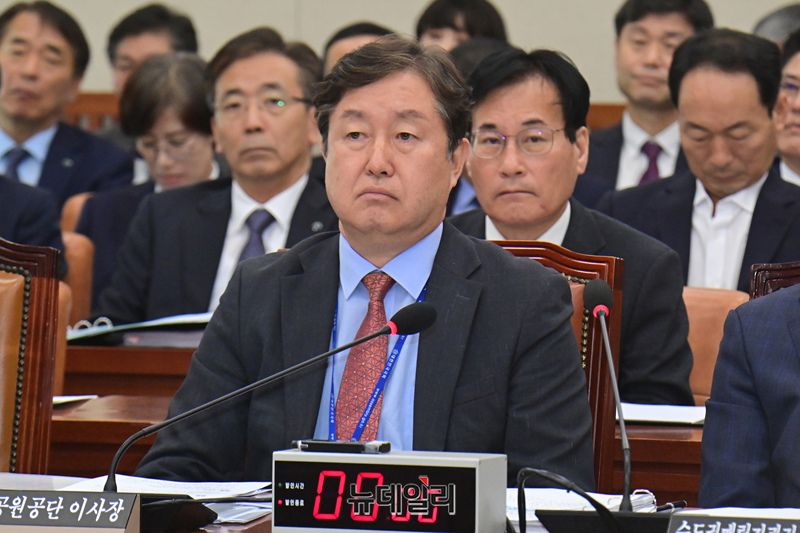송형근 국립공원관리공단 이사장이 17일 오전 국회에서 열린 환경노동위원회의 한국수자원공사 등에 대한 국정감사에 출석해 의원 질의를 듣고 있다.