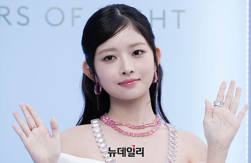 걸그룹 아이브 레이가 17일 오후 서울 성동구 XYZ 서울에서 열린 스와로브스키 ‘Masters of Light' 전시 기념 포토월에서 포즈를 취하고 있다.