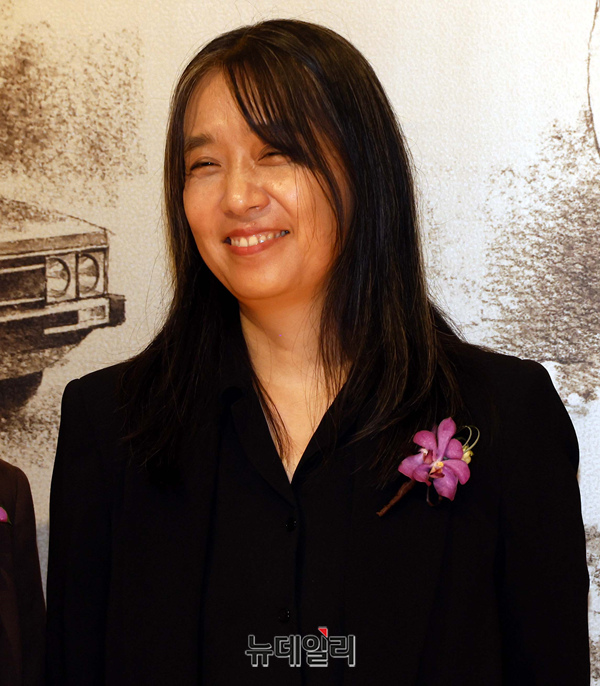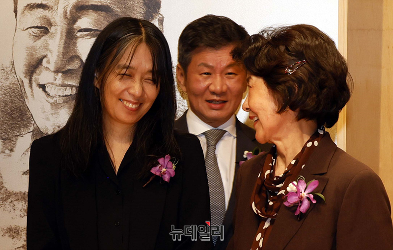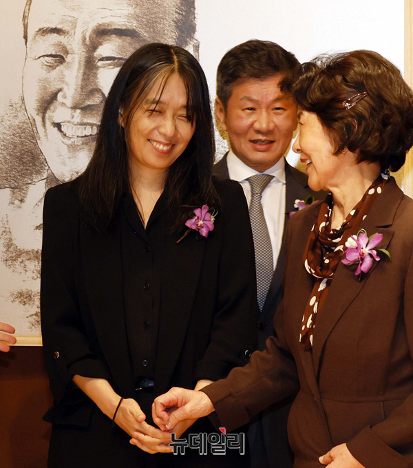 한국인 최초로 노벨문학상을 수상한 한강 작가가 17일 서울 강남구 아이파크타워에서 열린 제18회 포니정 혁신상 시상식에 참석하고있다. 포니정재단은 포니정 혁신상 수상자로 작가 한강 씨를 선정했다. 시상식에는 한강 작가를 비롯해 재단 이사장인 정몽규 HDC 회장, 고(故) 정세영 현대산업개발 명예회장의 부인 박영자 씨 등이 참석했다. (사진=공동취재단)