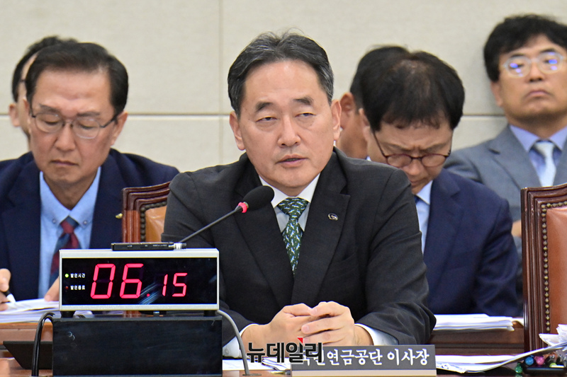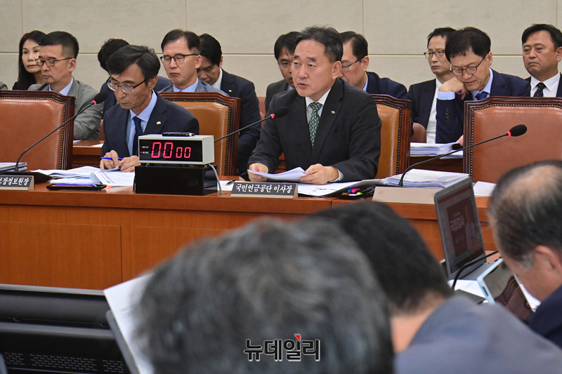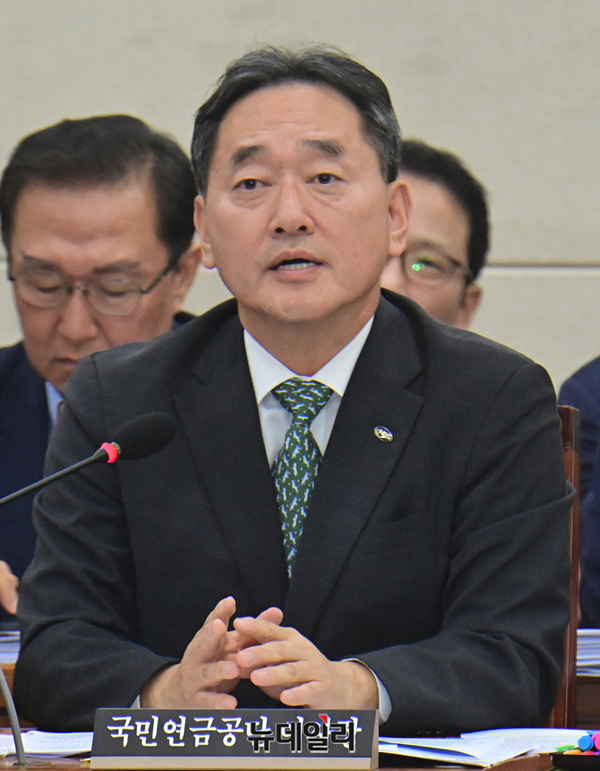 김태현 국민연금공단 이사장이 18일 오전 국회 보건복지위원회에서 열린 국민연금공단, 한국사회보장정보원에 대한 국정감사에서 의원들의 질의에 답하고 있다.