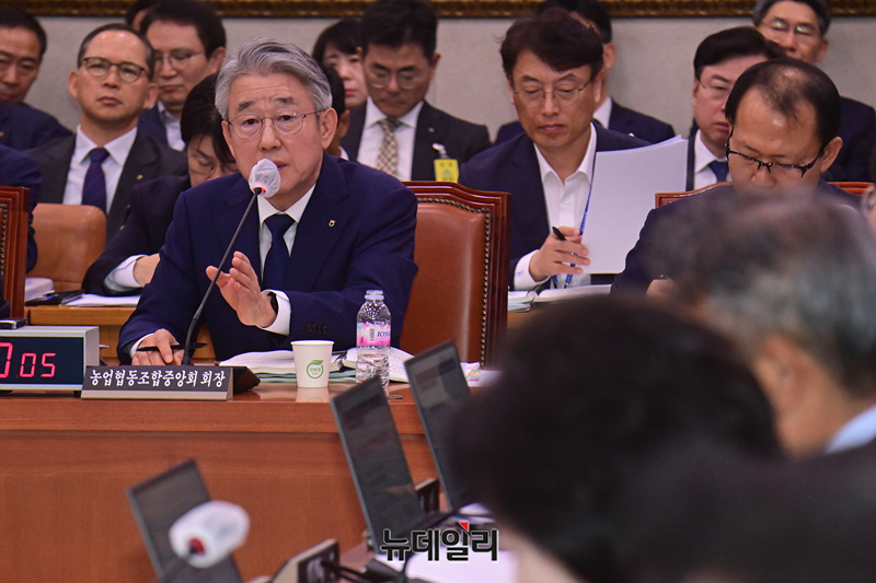 강호동 농업협동조합중앙회장이 18일 오전 국회 농림축산식품해양수산위원회에서 열린 농업협동조합중앙회, 농협경제지주 등에 대한 국정감사에서 의원들의 질문에 답하고 있다.
